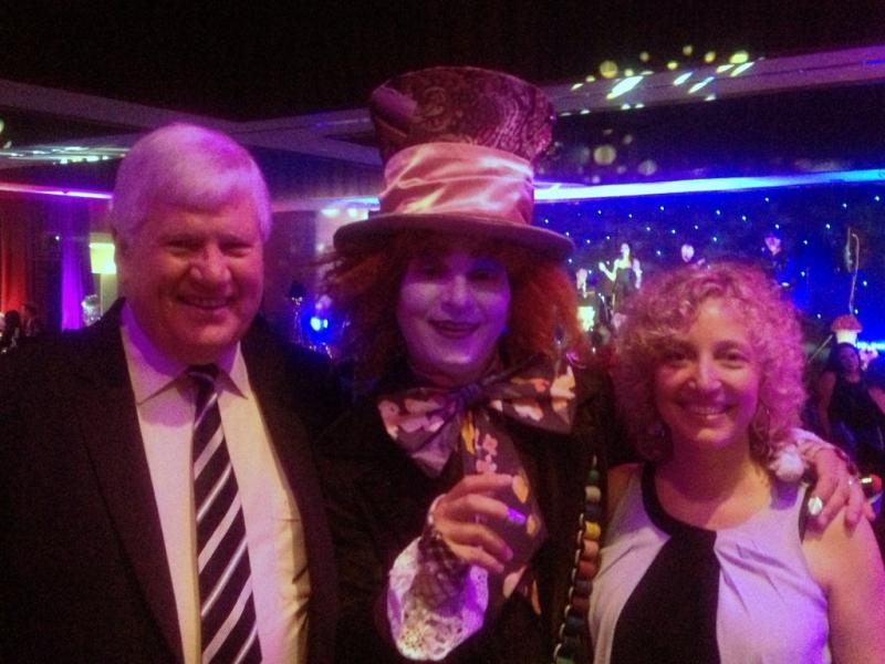 The night had an “Alice in Wonderland” theme. The White Rabbit and Alice joined us for cocktails and drinks on the terrace but they seemed in a continual state of confusion trying to find each other, but they knew they had a party to attend! The White Rabbit helped us into the auditorium for the awards presentation where the Mad Hatter appeared and took over the proceedings. He was very mad and said very confusing things but somehow managed to convey the brilliance along with the compelling excellence to be seen in all of the entries. The Mad Hatter and the sponsors did a great job presenting the awards to the bemused recipients.